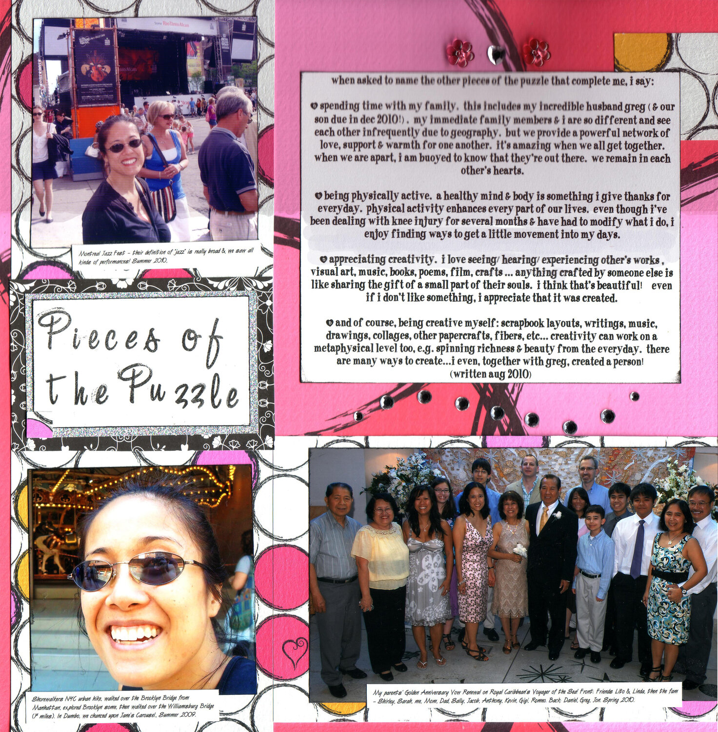 A big THANKS to Marlene - I was racking my brain trying to think of one "puzzle piece" for this challenge. But when I saw her fantastic response - http://www.scrapbook.com/galleries/152683/view/2812540/-1/20/1.html - I realized I could include a FEW things here! Much appreciation for the inspiration. And yep I guess we have similar fave colors!