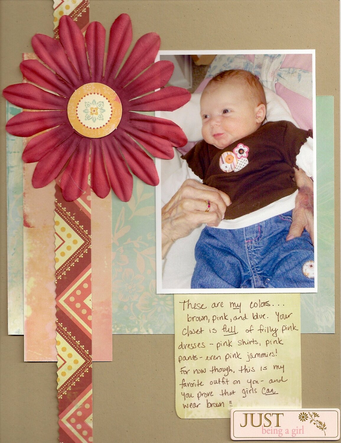my favorite outfit on sophie right now. all my colors-pink, brown, and blue! who says girls can't wear brown??