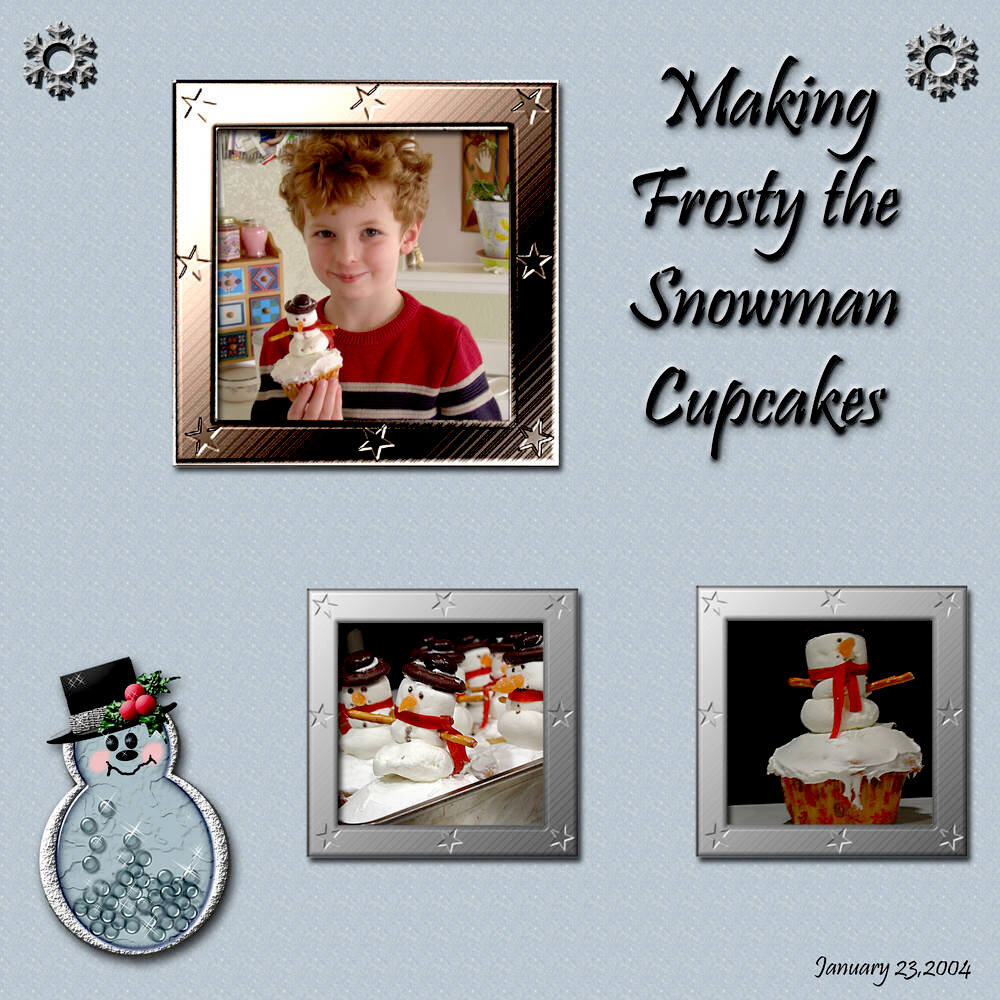 Marshmallow snowmen for preschool snack. Another early all digital layout.