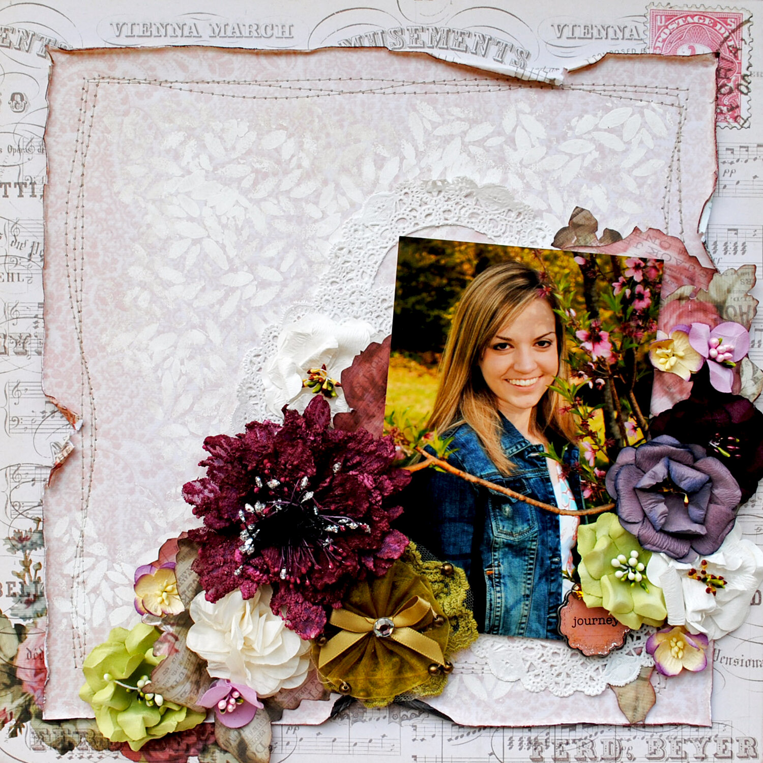 WOW - this is gorgeous - love that deep rich purple flower too - brings so much energy to your page - your distressing is so beautiful with the stitching . . . and what a gorgeous photo. I'm making this a FAVE and am going to check out your tutorial.