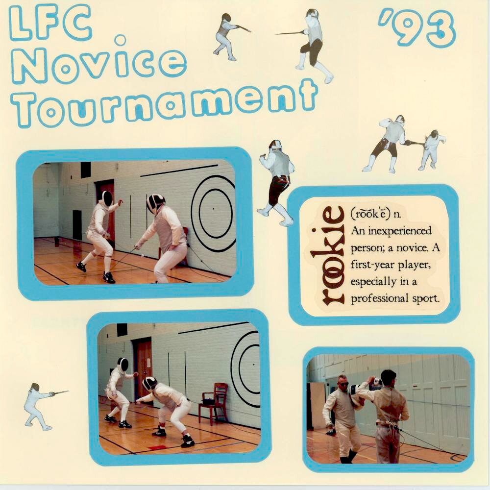 I started to scrap my husband's events for him. These took place before I met him. It was also my first use of my Sizzix Fruit Smoothie font. The small scattered fencers are cut carefully out of unused pictures. I was happy with how it came out. I like the uncluttered look.