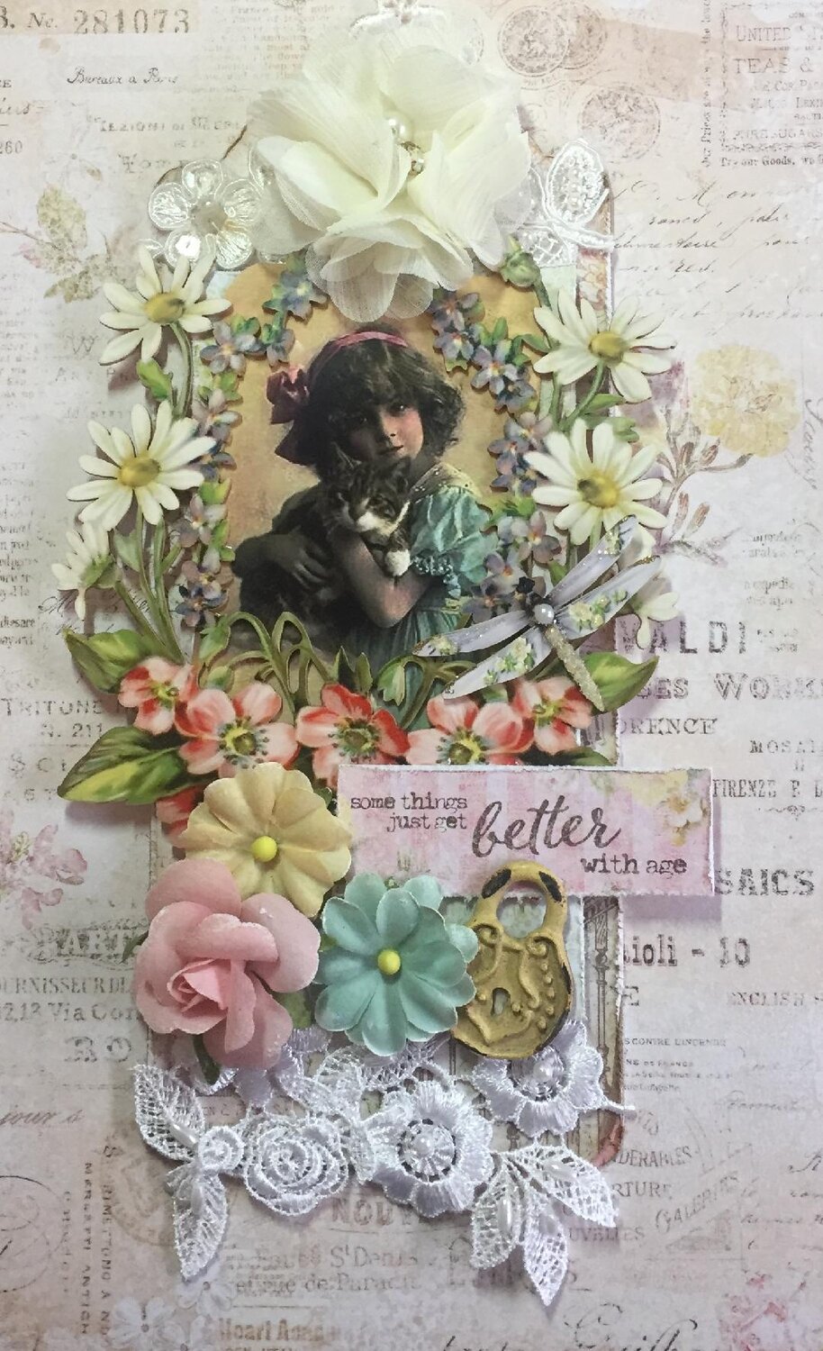 Yes, our Laura is pretty precious & I am sure she loves it!! This is so gorgeous (2 EMT's) with all the lace, flowers, & that sweet image. Your tags are truly a work of art Donna!:)