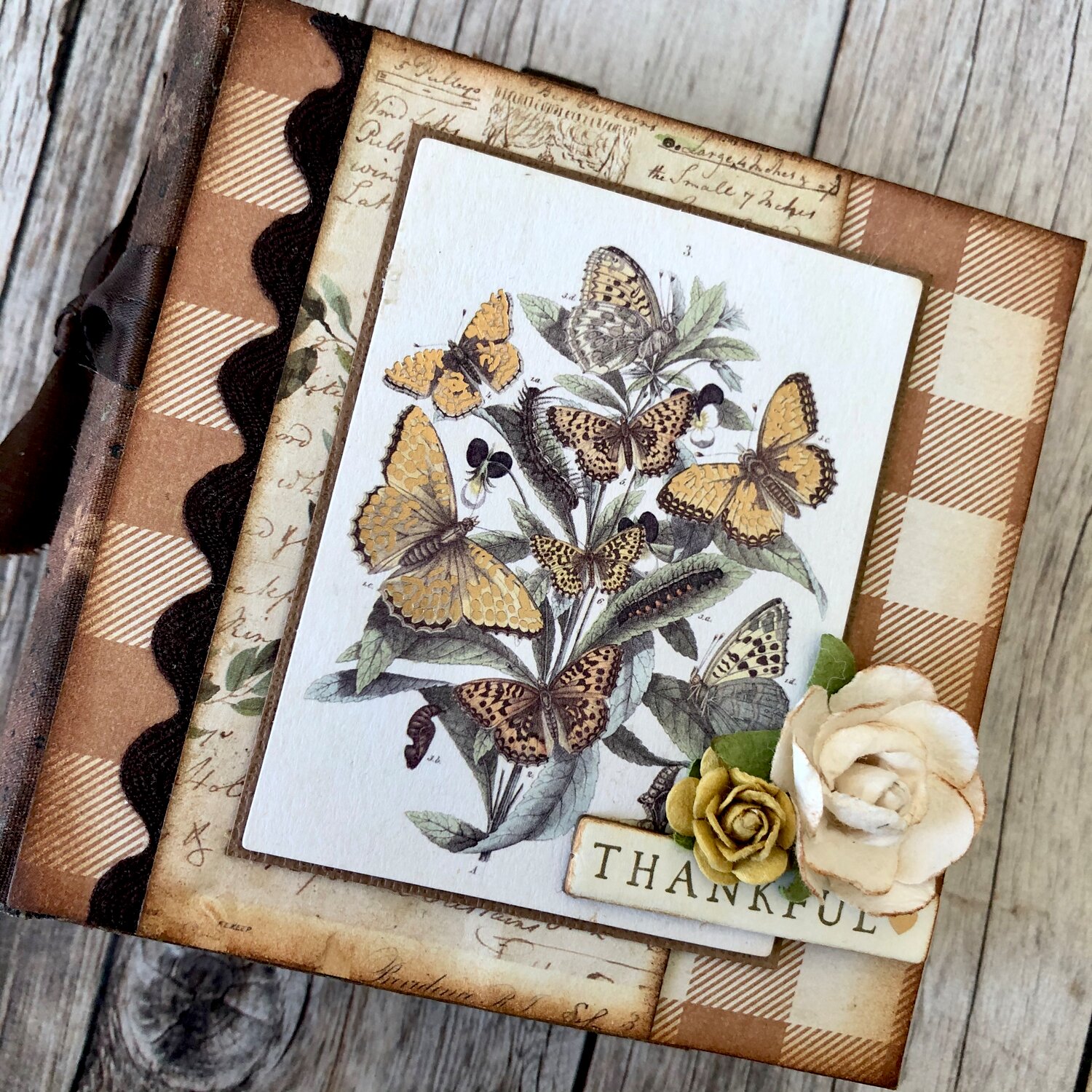 4x4 album created with Prima Autumn Sunset and using soft fabric spine.