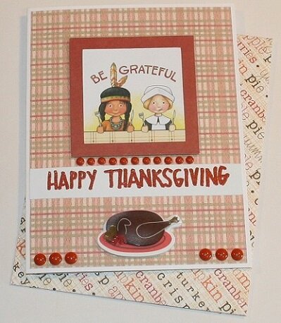 Entered into Octobers Card Sketch Challenge for SKETCH #4. Also Entered into the Scrap With Your Scraps Challenge, the Stamping Challenge, the Sticker Challenge and the Hoarders Challenge. The background paper and the white banner were scraps. I stamped and powder embossed 'HAPPY THANKSGIVING'. The turkey is a 3D sticker. The image and the frame are some supplies I got second hand several years ago. I used 3D foam under the image for added dimension. I added some enamel dots and I made the envelope. Thanks so much for all your comments, votes and friendly messages :o)Ro