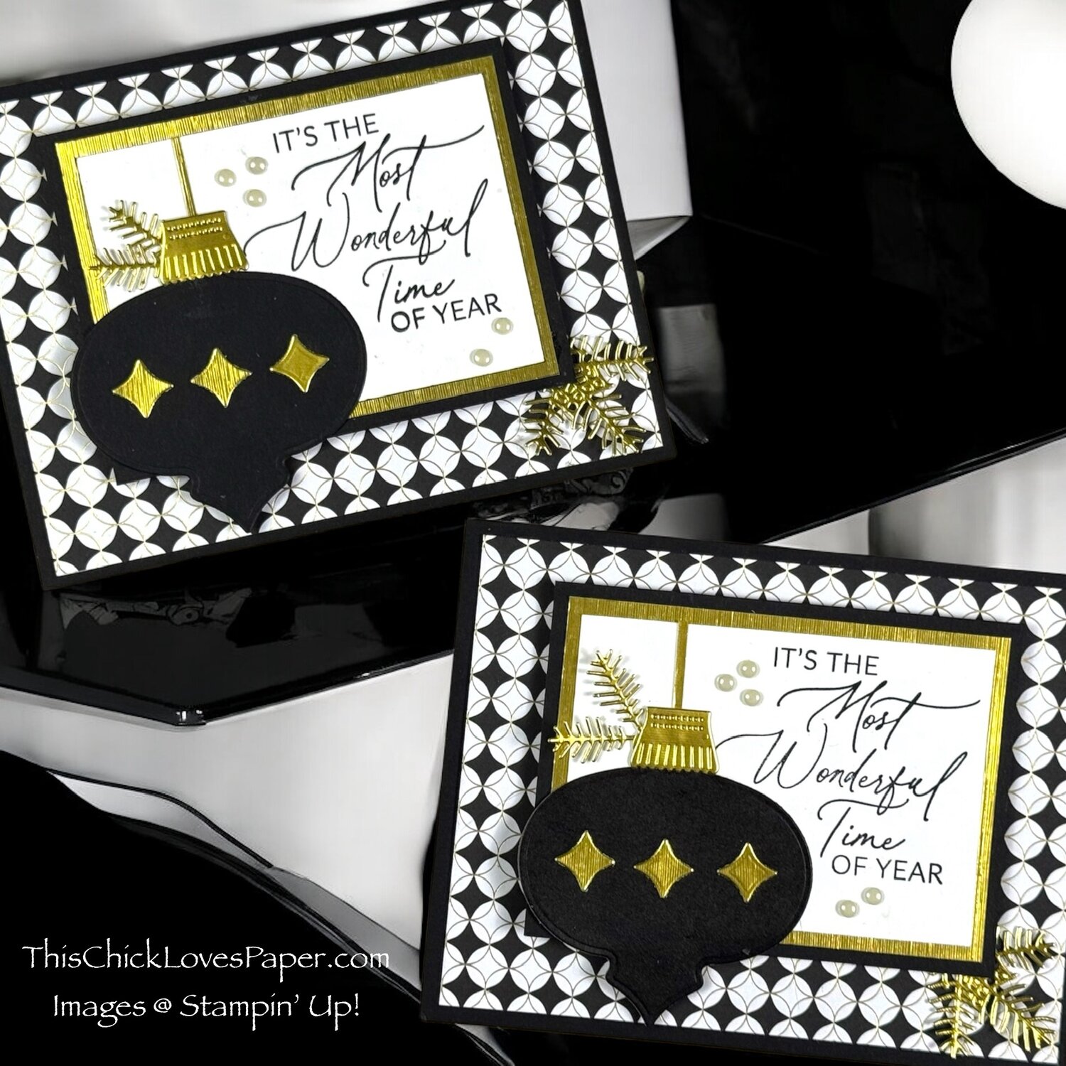 Elegant meets bold! This black and gold modern Christmas card shines with metallic layers, a striking ornament focal point, geometric patterns, and just the right touch of sparkle. Perfect for classy holiday vibes.
