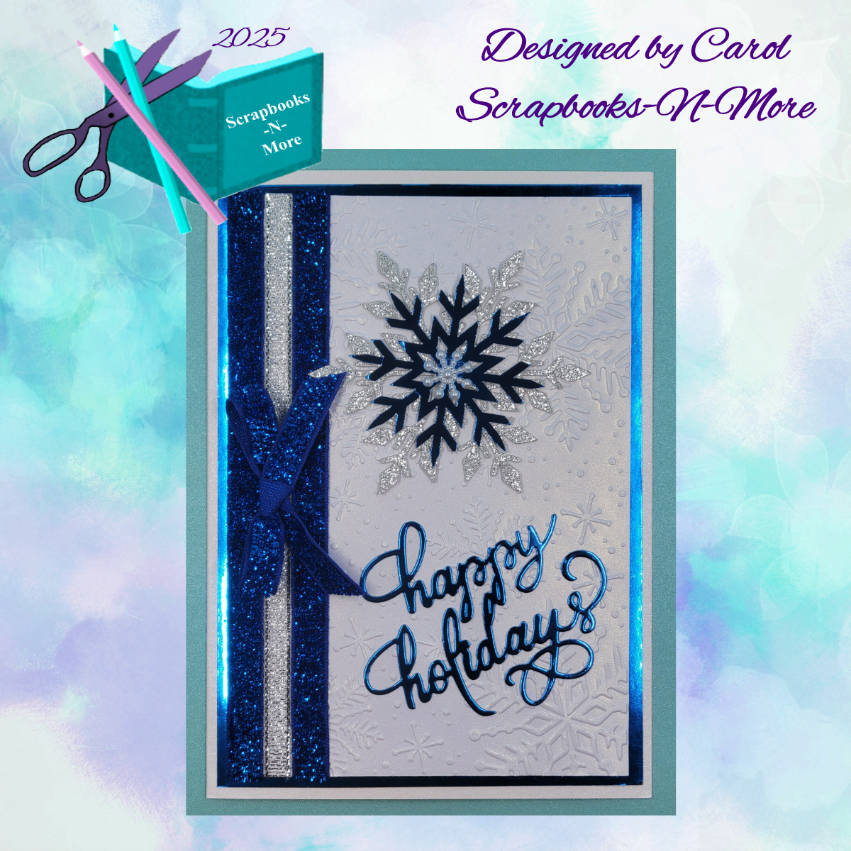White Crystal Metallic Cardstock Layer with Folder Embossed Snowflakes