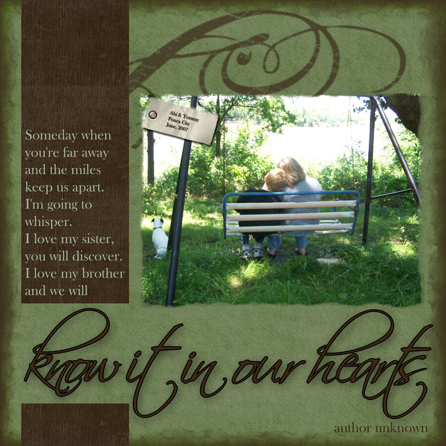 My 6-year old neice took this beautiful picture of my son and daughter! (I love you H, you ROCK!) It was taken at my mom and dad's at the beginning of the summer. It took me forever to find a quote, but I finally found one in here at sb.com! (http://www.scrapbook.com/quotes/doc/15725/114.html) Thanks katgurl72_kylie!