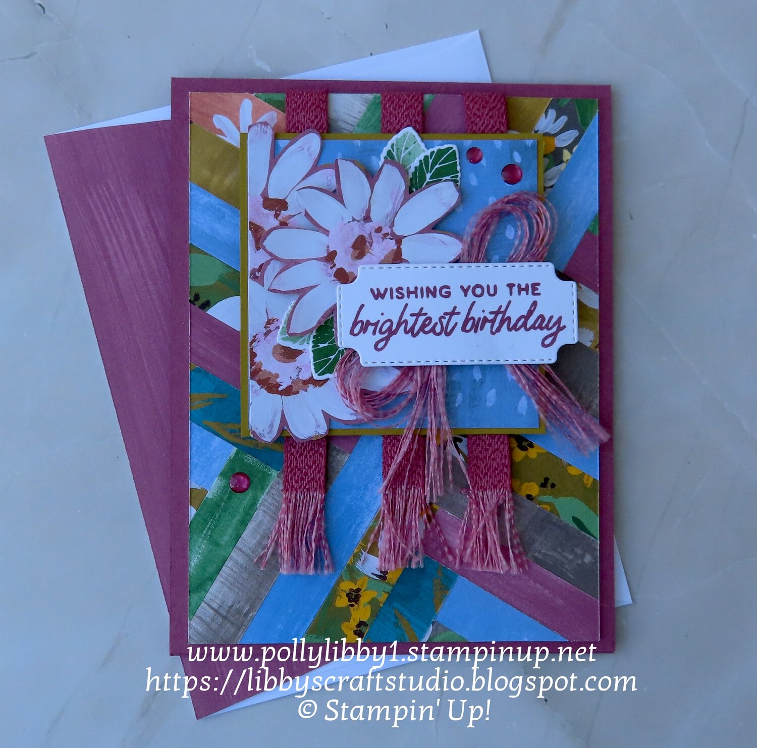 Created using Stampin' Up! products.For more details, visit my blog: https://libbyscraftstudio.blogspot.com/2023/05/cheerful-daisies-birthday-card.html