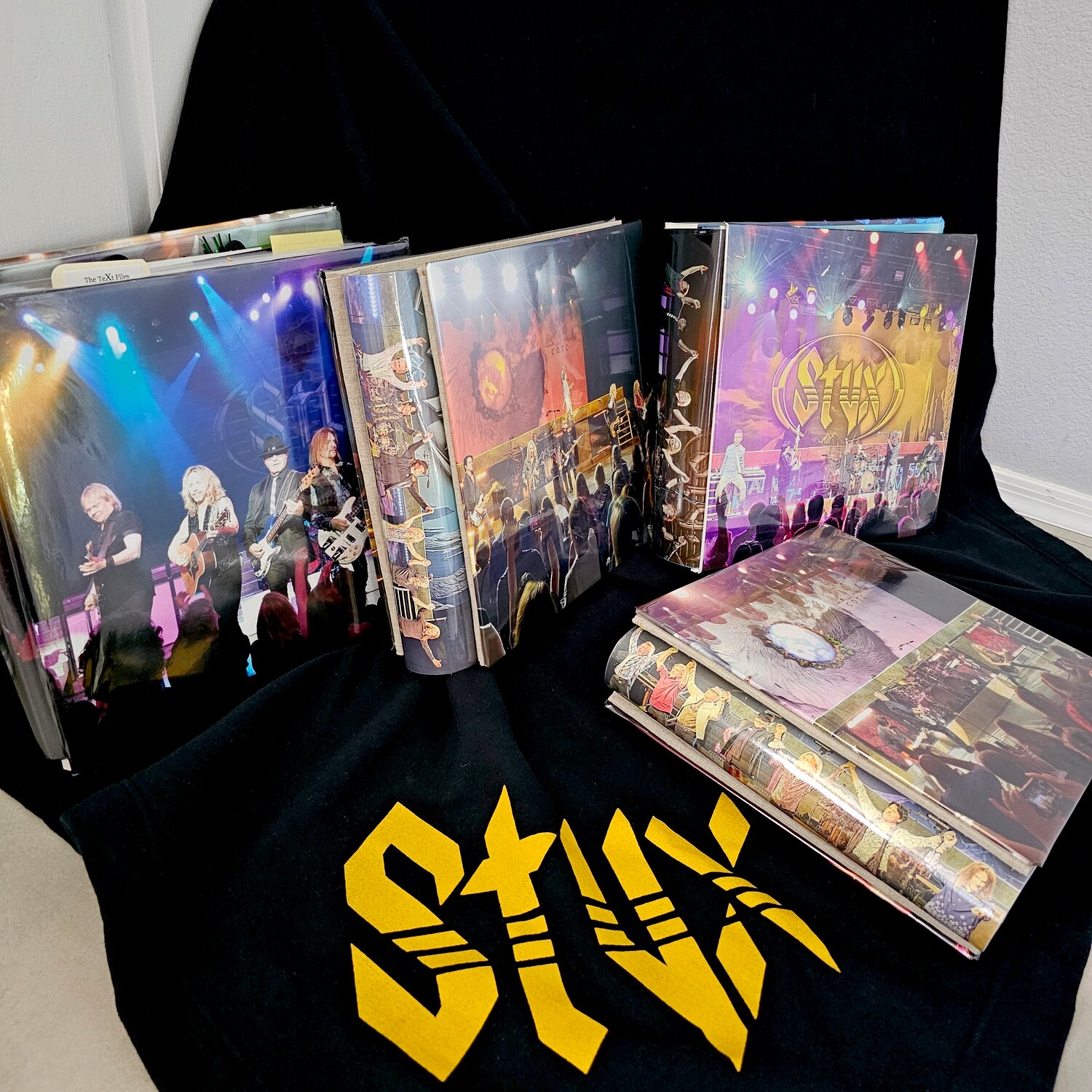 Found these album kits years ago. I got 2 each of 2 styles. Ordered poster size prints of photos I took at random shows, used the sticky sheets to attach them to the albums, then covered them with clear vinyl. I also added velcro dots to keep the folded edges that cover the posts anchored down
