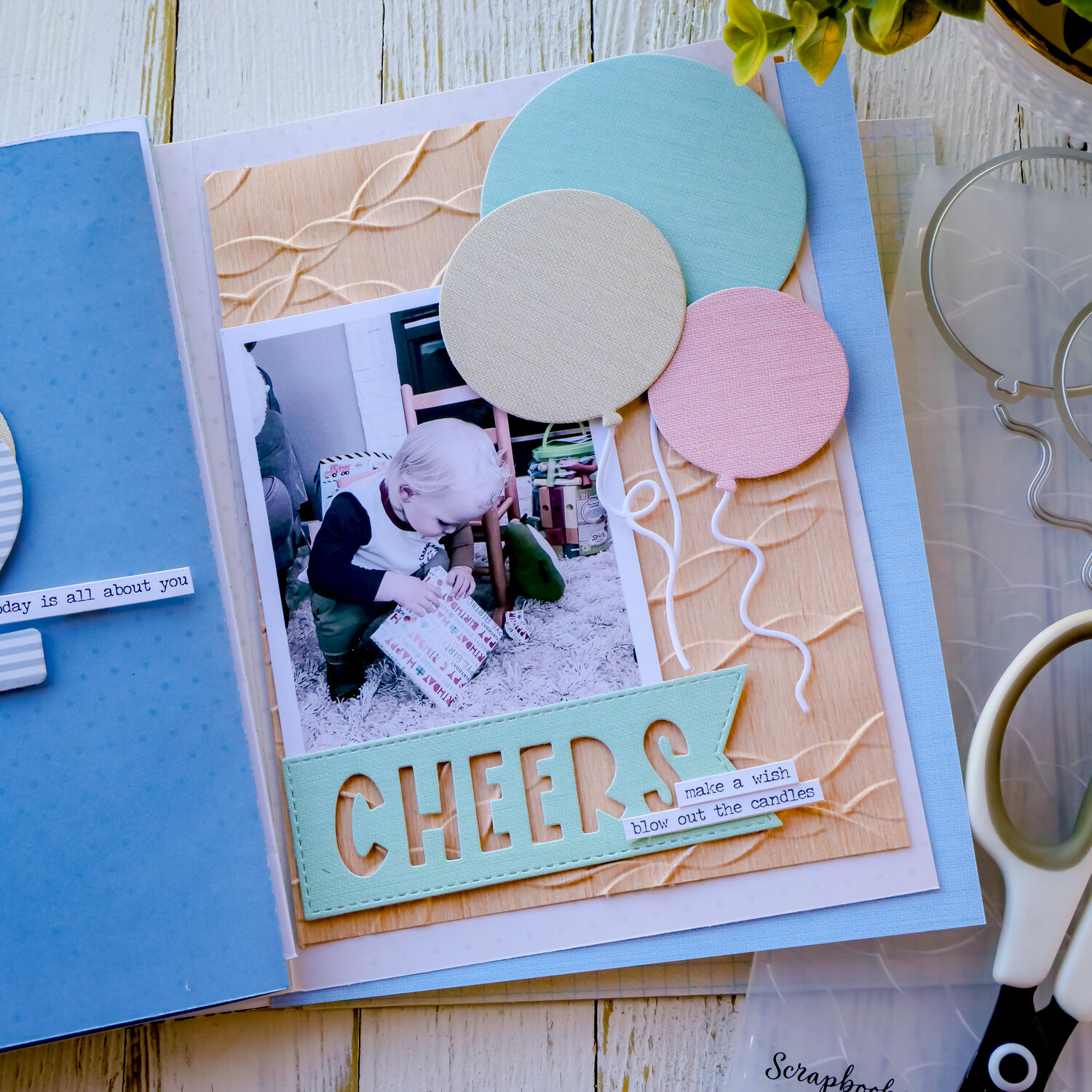 That Banner Emboss Folder is so much fun from the Justin Adkins SBC Fest Kit. Makes for a great page background to this festive little birthday page.